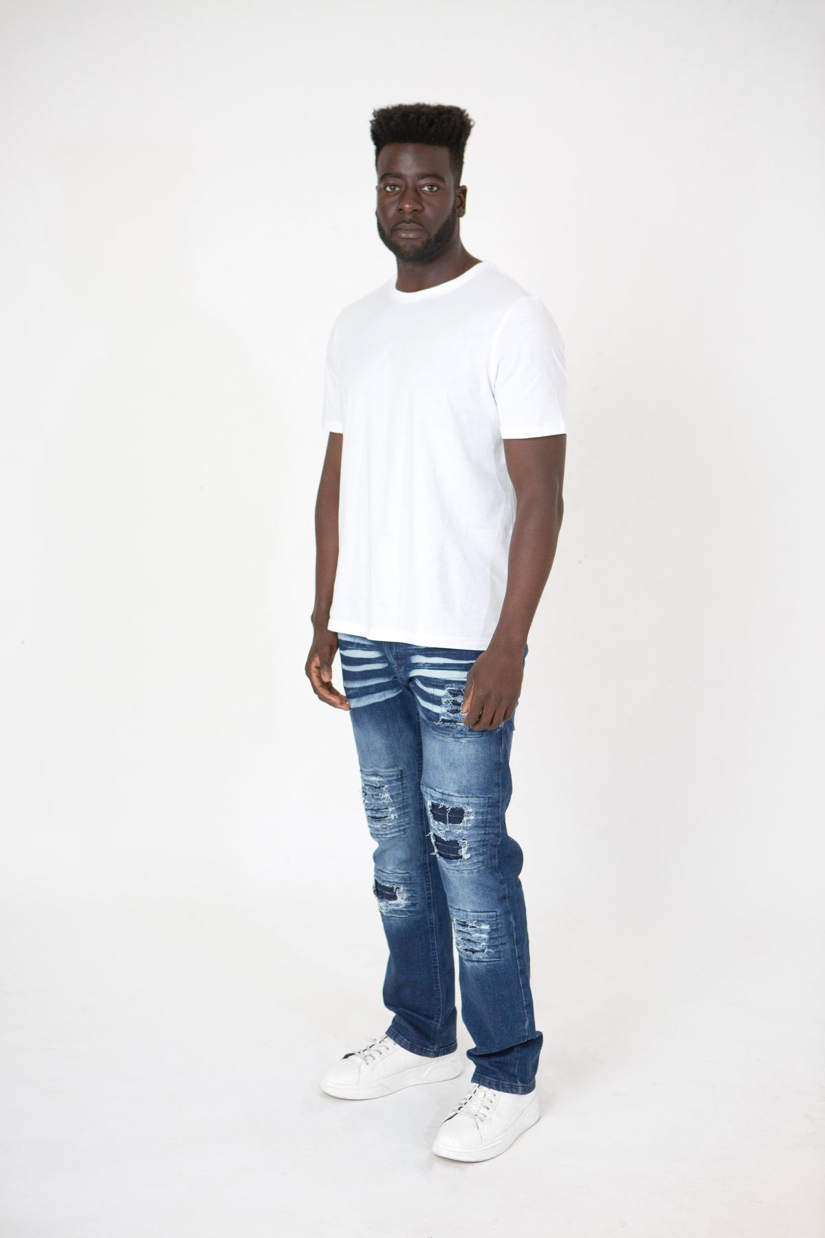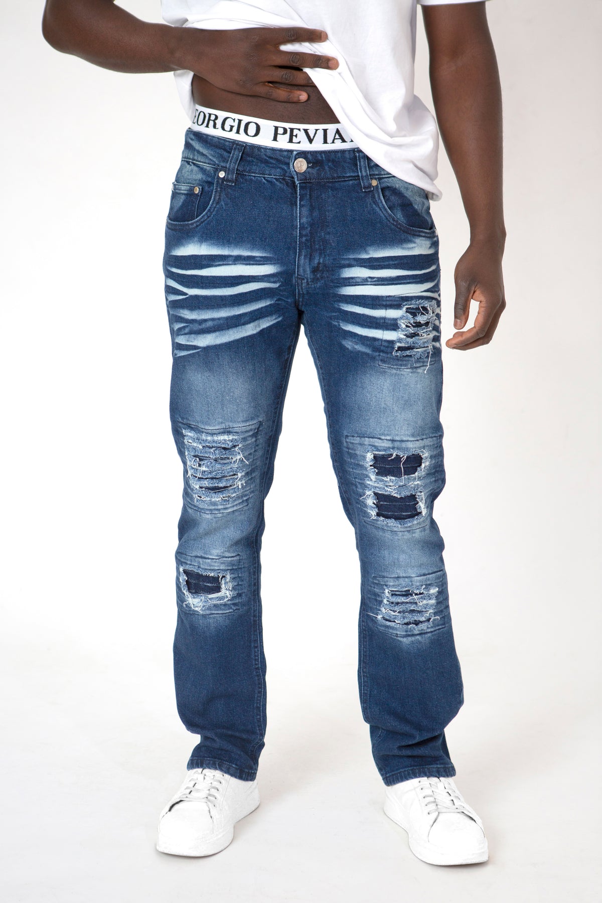 Gatwick Dark Blue: STONE WASH DISTRESSED & RIPPED JEANS STARSTED DB