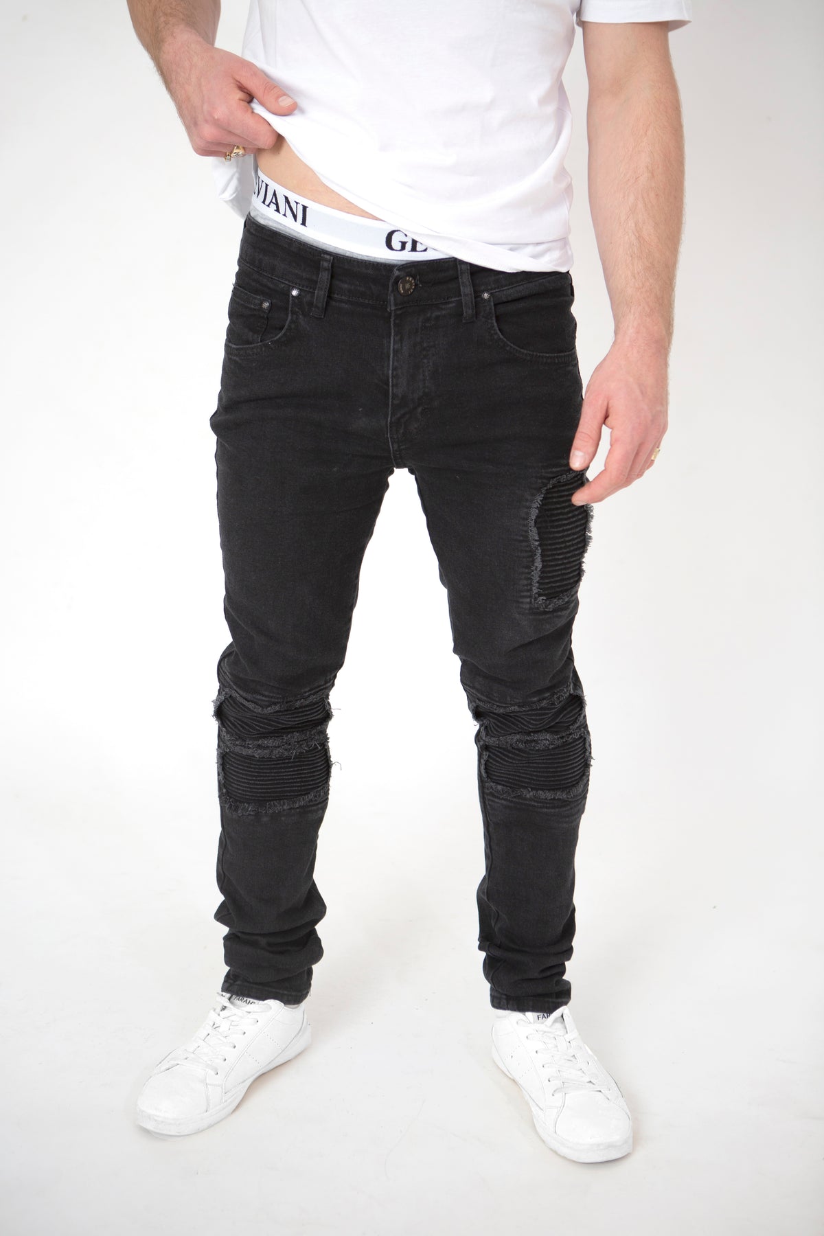 ASHEN EMBRACE: COMFORT DISTRESSED BLACK JEANS 402
